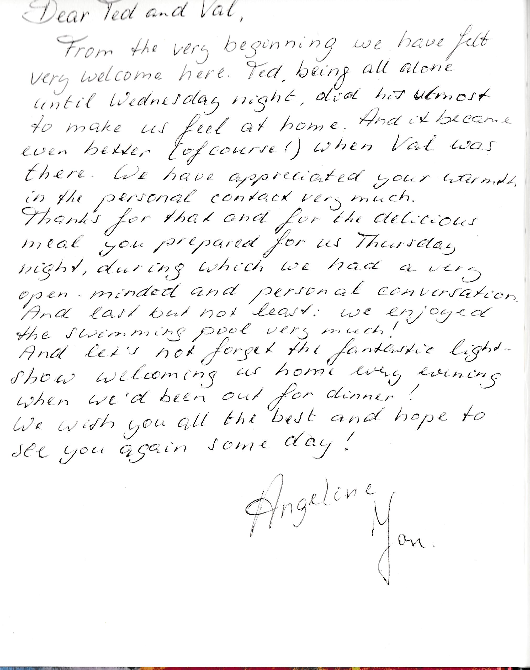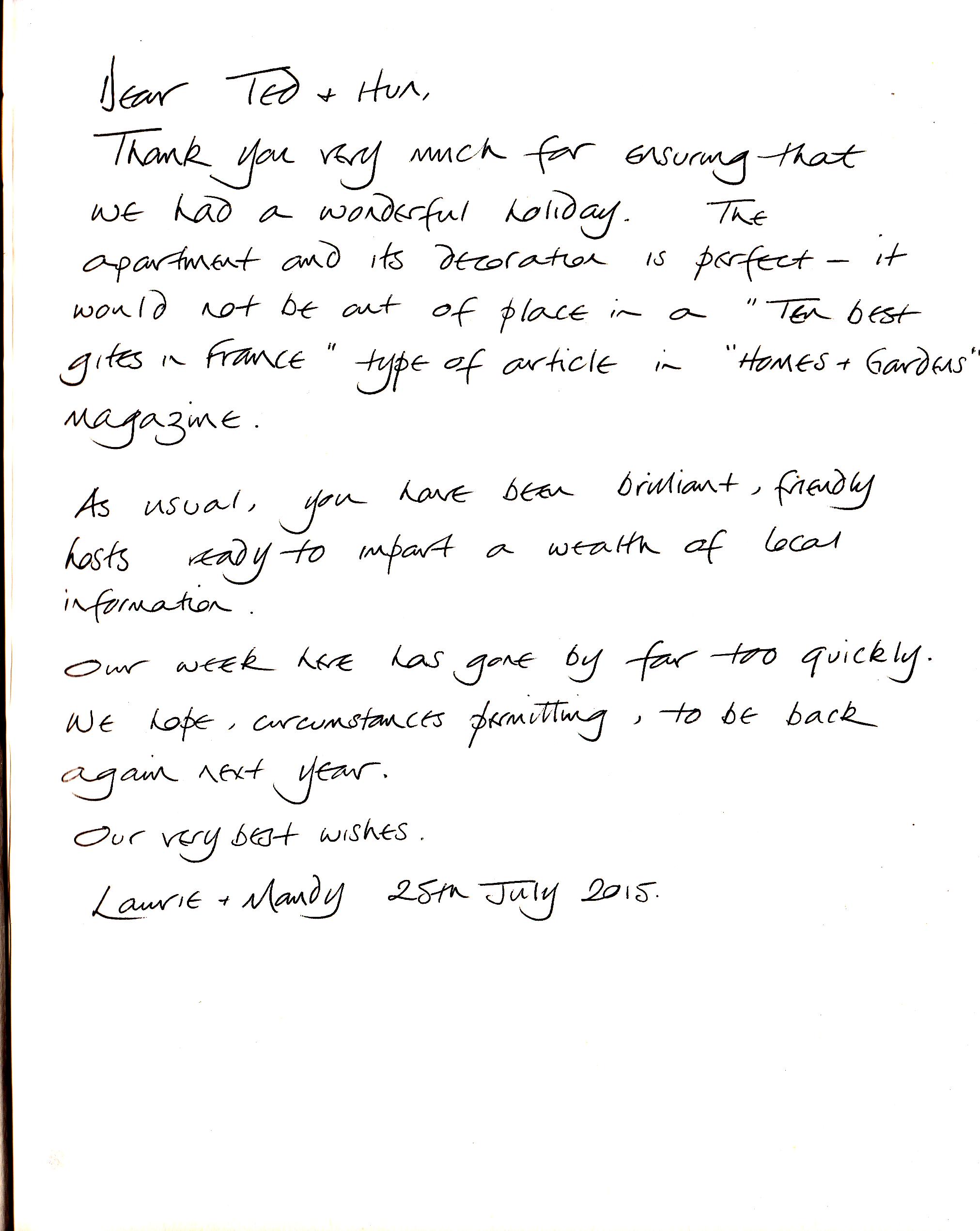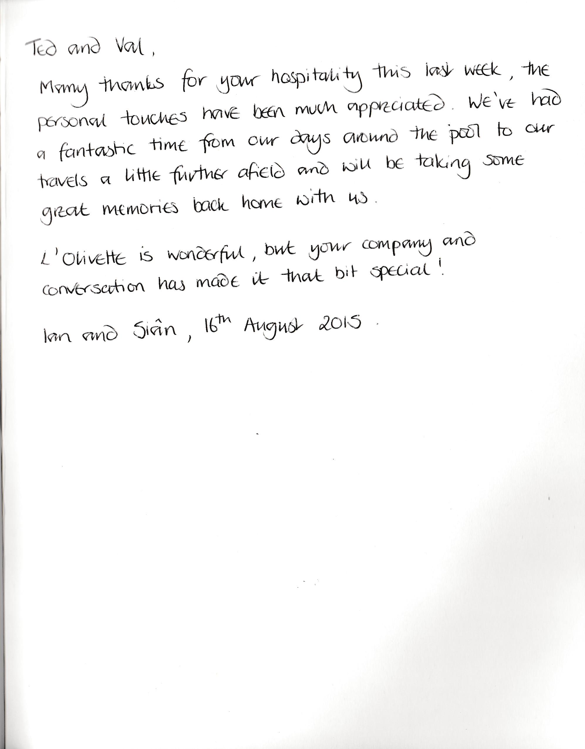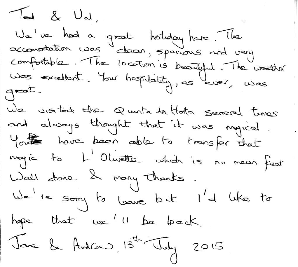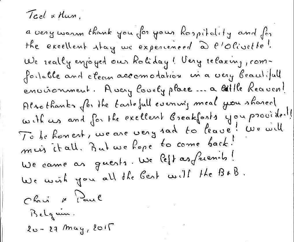 Our first guests left this fabulous comment in our book .... Click to see it full size!